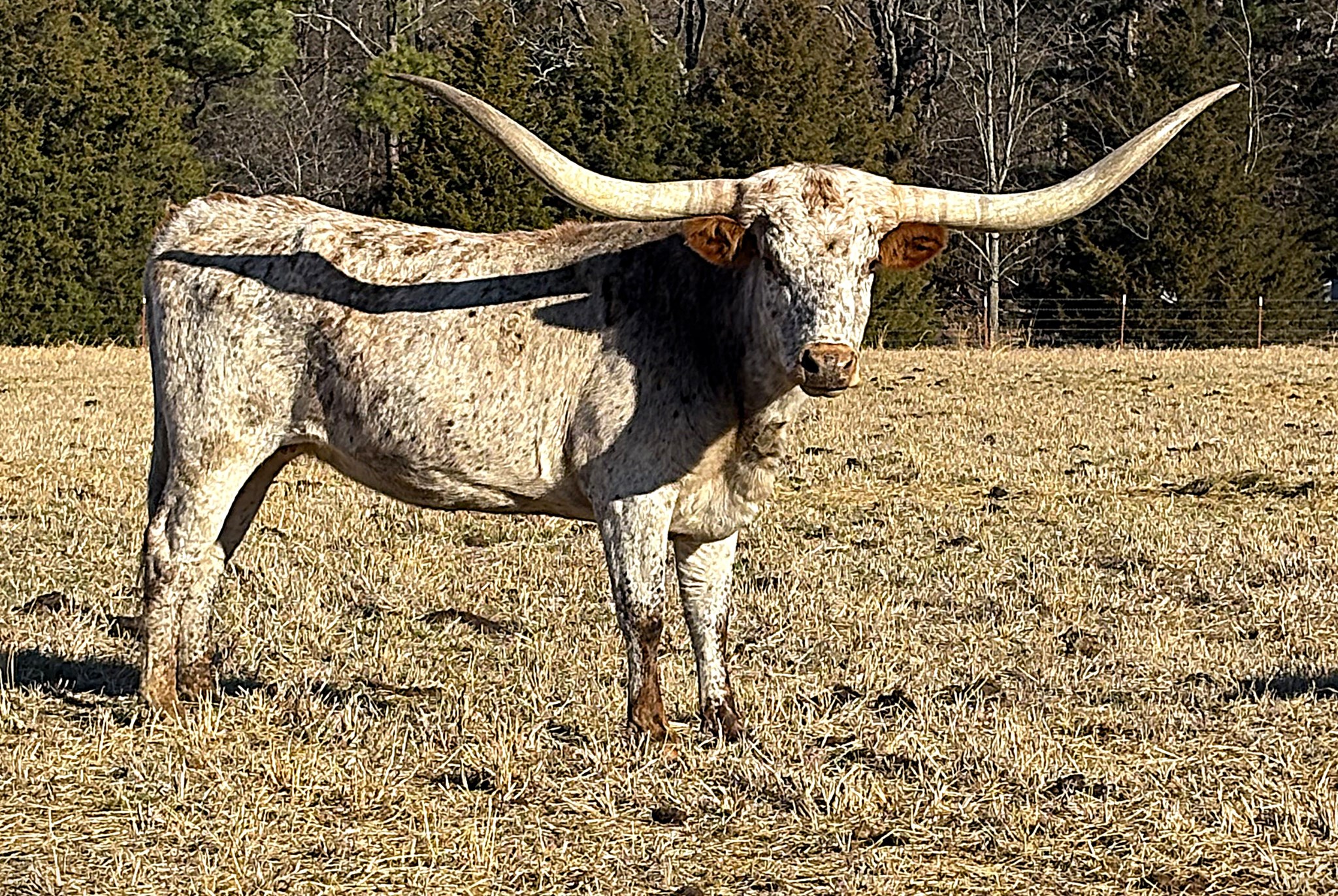 This is a beautiful roan cow from Tommy Peterson. She is bred to 84/23, a Hudson bred bull. She is due for a spring 2026 calf.