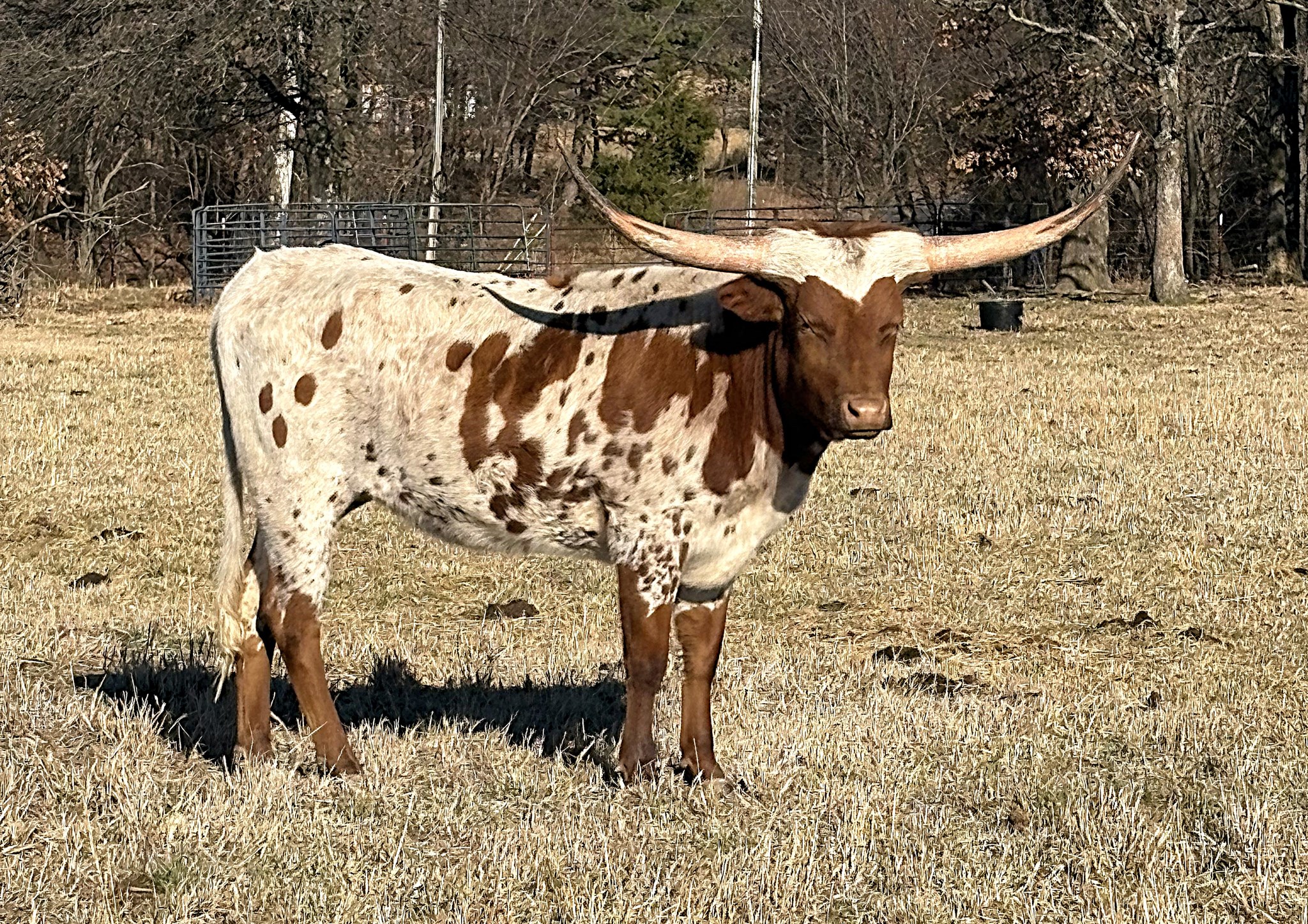 Talk about a heifer with an amazing body!! This heifer walks the pasture with a stacked pedigree and she knows it. Sired by the awesome PCC Dark Knight, out of PCC Honey Pot. She is currently bred to DH Hondo for a spring 2026 calf and she is bound to be a great producer!!