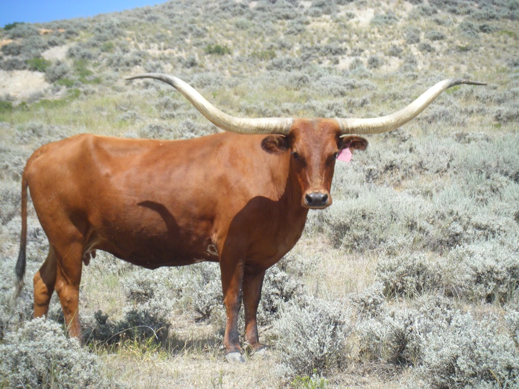 Beautiful Top Caliber daughter.Huge horn.Her name fits her.This is one classy cow.Her mother is Sheza Hot Chick. She measured 79 1/8" tip to tip on 11-23-14.