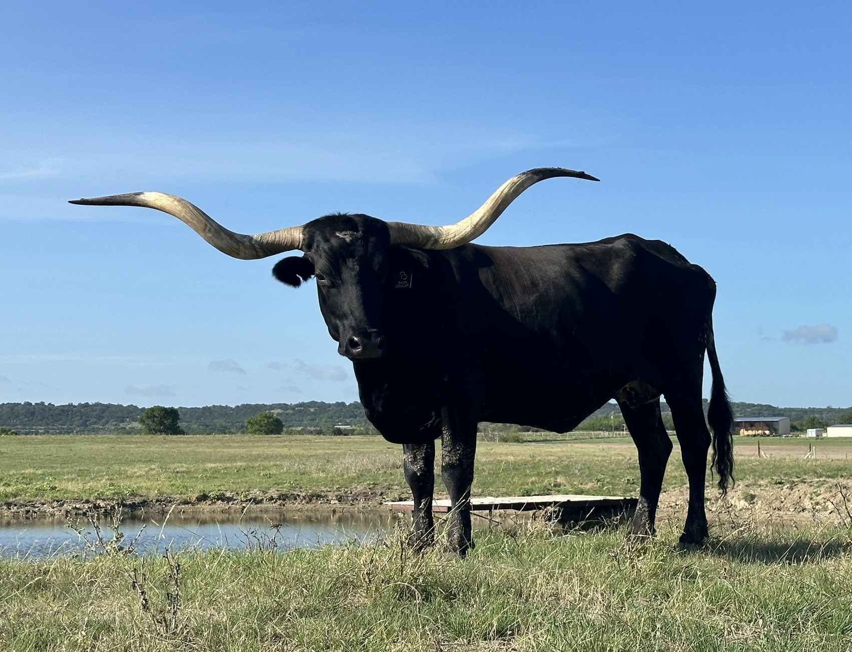 Barn Dancer is a striking, true black cow whose pedigree is 💪 in the longhorn world. Her sire, Over Kill, is a name that resonates throughout the Longhorn industry — a powerhouse known for color, horn, and commanding presence. A direct son of Overhead (by the legendary Headliner FF248) and Field of Pearls, Over Kill combined the striking black-and-white color pattern of his sire line with the structural correctness and maternal depth of his dam. Field of Pearls herself is one of the most influential cows of her generation, also the dam of Pearl Snap BCB and Wiregrass Magnolia, leaving her mark in programs across the country. On the maternal side, Tempted Friend continues the excellence, bringing in the genetics of Temptation’s The Ace, one of the breed’s all-time most iconic sires. Temptation’s The Ace stamped his offspring with refinement, horn, and the kind of class that defined an era. Her maternal grandsire line also includes Feathered Friend, a daughter of Feather Dancer, adding length, femininity, and frame — the exact traits that make Barn Dancer so eye-catching today.